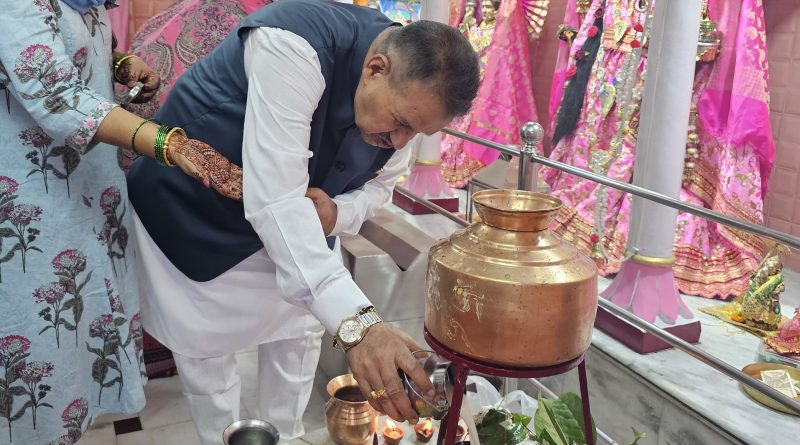देहरादू । कैबिनेट मंत्री गणेश जोशी ने श्रावण मास के सोमवार के पावन अवसर पर न्यू कैंट रोड स्थित माता मंदिर में धर्मपत्नी निर्मला जोशी के साथ भगवान शिव का जलाभिषेक किया। इस दौरान उन्होंने पूजा-अर्चना कर प्रदेशवासियों के सुख, शांति और समृद्धि की कामना की।