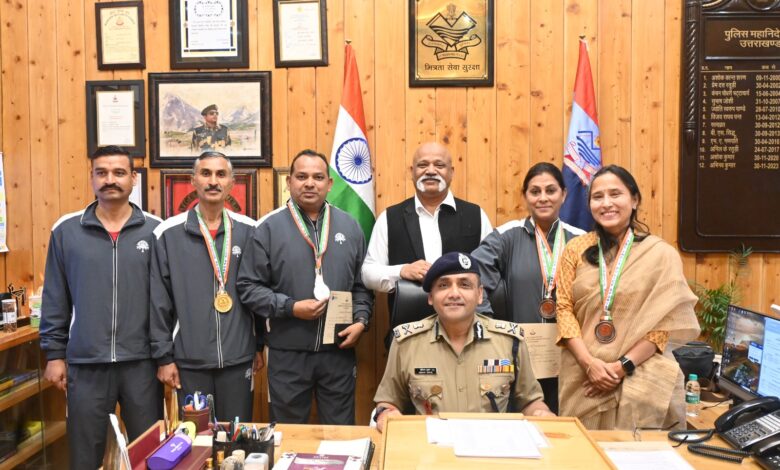 देहरादून। पुलिस मुख्यालय में पुलिस महानिदेशक अभिनव कुमार ने 16वीं अखिल भारतीय पुलिस बैडमिंटन चैंपियनशिप-2024 एवं 72वीं अखिल भारतीय पुलिस वॉलीबॉल क्लस्टर 2023-24 में पदक प्राप्त खिलाड़ियों से मिलकर उन्हें शुभकामनाएं देते हुये भविष्य में होने वाली प्रतियोगिताओं के लिए भी कड़ी मेहनत व लगन से अभ्यास करने व स्वर्ण पदक प्राप्त करने हेतु प्रेरित किया। अमित सिन्हा, अपर पुलिस महानिदेशक, प्रशासन, वरिष्ठ उपाध्यक्ष उत्तराखण्ड पुलिस स्पोर्ट्स कंट्रोल बोर्ड ने बताया कि दिनांक 17 मार्च से 22 मार्च, 2024 तक तेलंगाना, हैदराबाद में आयोजित हुई 16वीं अखिल भारतीय पुलिस बैडमिंटन चैंपियनशिप-2024 में राजपत्रित अधिकारी महिला सिंगल ओपन स्पर्धा में निवेदिता कुकरेती, पुलिस उपमहानिरीक्षक फायर ने कांस्य पदक, राजपत्रित अधिकारी पुरुष सिंगल 55़ स्पर्धा में दिग्विजय सिंह परिहार, पुलिस उपाधीक्षक, पुलिस दूरसंचार ने स्वर्ण पदक, अराजपत्रित अधिकारी पुरुष सिंगल 45़ स्पर्धा में श्री महेश कंडवाल, उप निरीक्षक, पुलिस दूरसंचार, देहरादून ने कांस्य पदक, अराजपत्रित अधिकारी महिला सिंगल 50़ स्पर्धा में विजय चैधरी, अपर उप निरीक्षक, पौड़ी गढ़वाल ने कांस्य पदक, अराजपत्रित अधिकारी पुरुष डबल्स 45़ स्पर्धा में अखिलेश कुमार प्रतिसार निरीक्षक पीटीसी एवं महेश कंडवाल, उपरीक्षक, पुलिस दूरसंचार ने रजत पदक, अराजपत्रित अधिकारी मिक्स्ड डबल्स 45़ स्पर्धा में महेश कंडवाल, उपनिरीक्षक पुलिस दूरसंचार, देहरादून एवं विजय चैधरी, अपर उपनिरीक्षक पौड़ी गढ़वाल ने रजत पदक जीतकर उत्तराखण्ड पुलिस का मान बढ़ाया है।